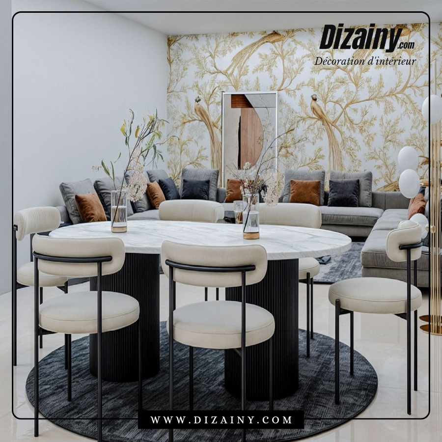 Avec notre pack Glamour, optez pour une touche de modernité dans votre salon ou cuisine, grâce à cette table à manger plus 6 chaises design chez Dizainy